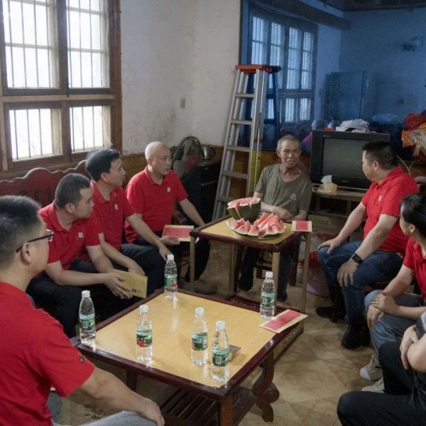 7月1日上午,朝陽(yáng)集團(tuán)開(kāi)展走訪(fǎng)慰問(wèn)公司患癌職工活動(dòng)。黨支部書(shū)記文志勇、副書(shū)記汪華及支部黨員代表來(lái)到大浦鎮(zhèn)鄉(xiāng)中學(xué)看望鼻咽癌患者雷春平,為其送去慰問(wèn)金14000元。隨后,一行人前往大浦鎮(zhèn)爐鋪村慰問(wèn)乳腺癌患者吳七齡,送去慰問(wèn)金7000元。