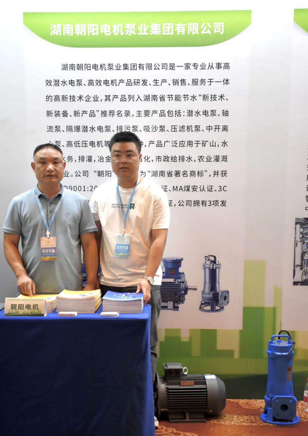 本次活動以“產品設備更新改造助力節能降碳”為主題,提出了持續提升能源利用效率的要求,展示了重點領域產品設備更新改造的發展方向,為供方、需方和回收方企業提供了交流共創、聚智聚力的平臺。朝陽作為重點領域產品設備供方衡陽地區的代表,攜公司研發推出的電動機和污水泵亮相本次展會。